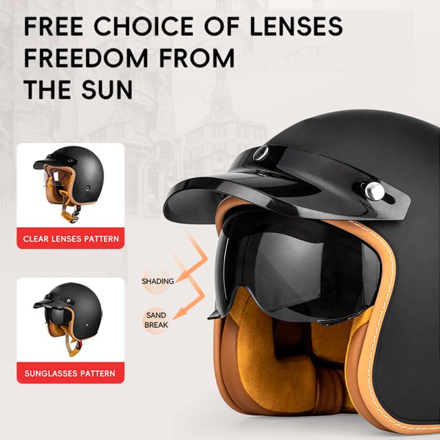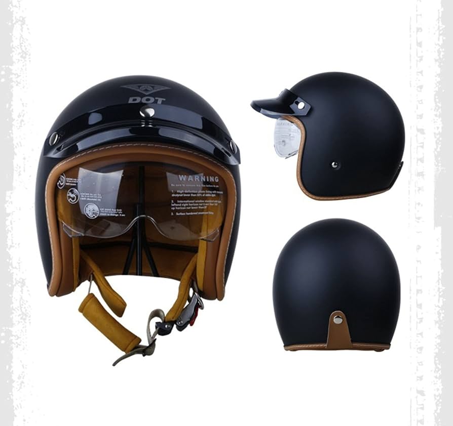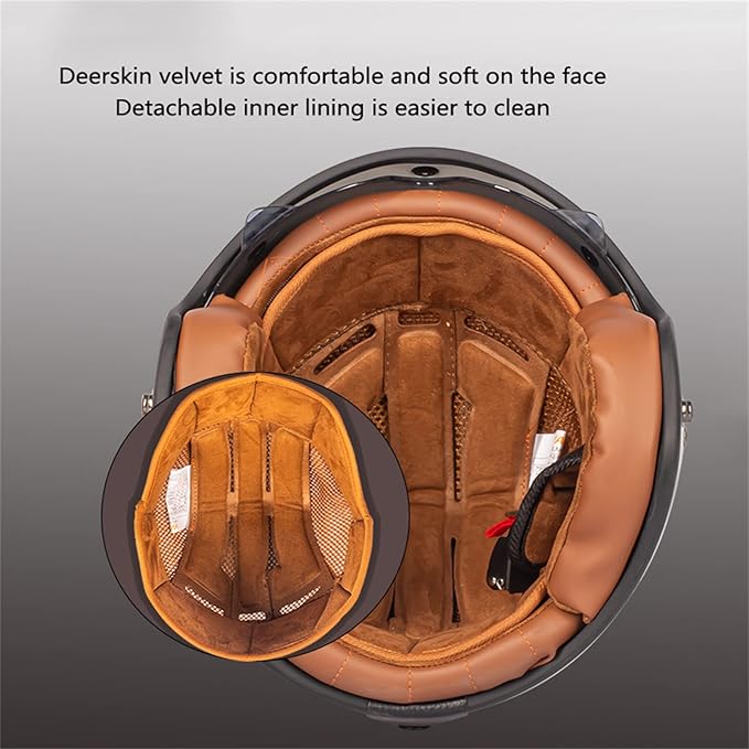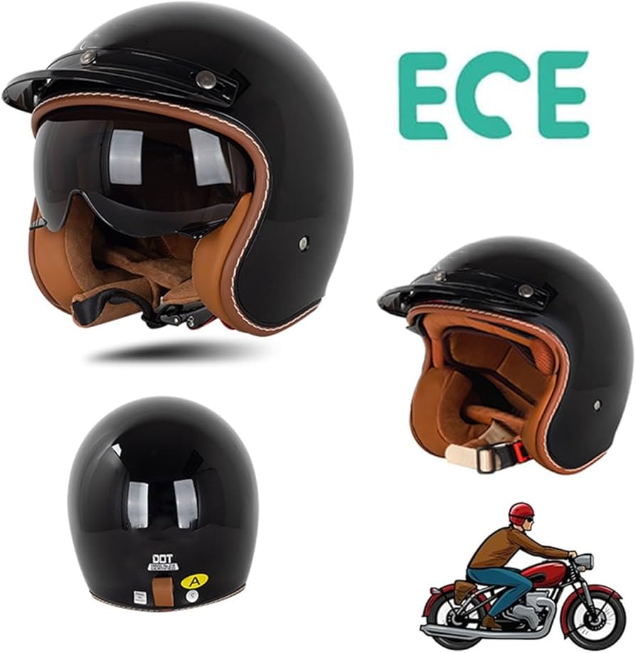 BGMKE Men’s and Women’s 3/4 Half Helmet Retro Bowls with Visor Motorcycle Jet Helmet ECE Approved for Adult Scooter Moped Vintage Moped, 54-60 cm