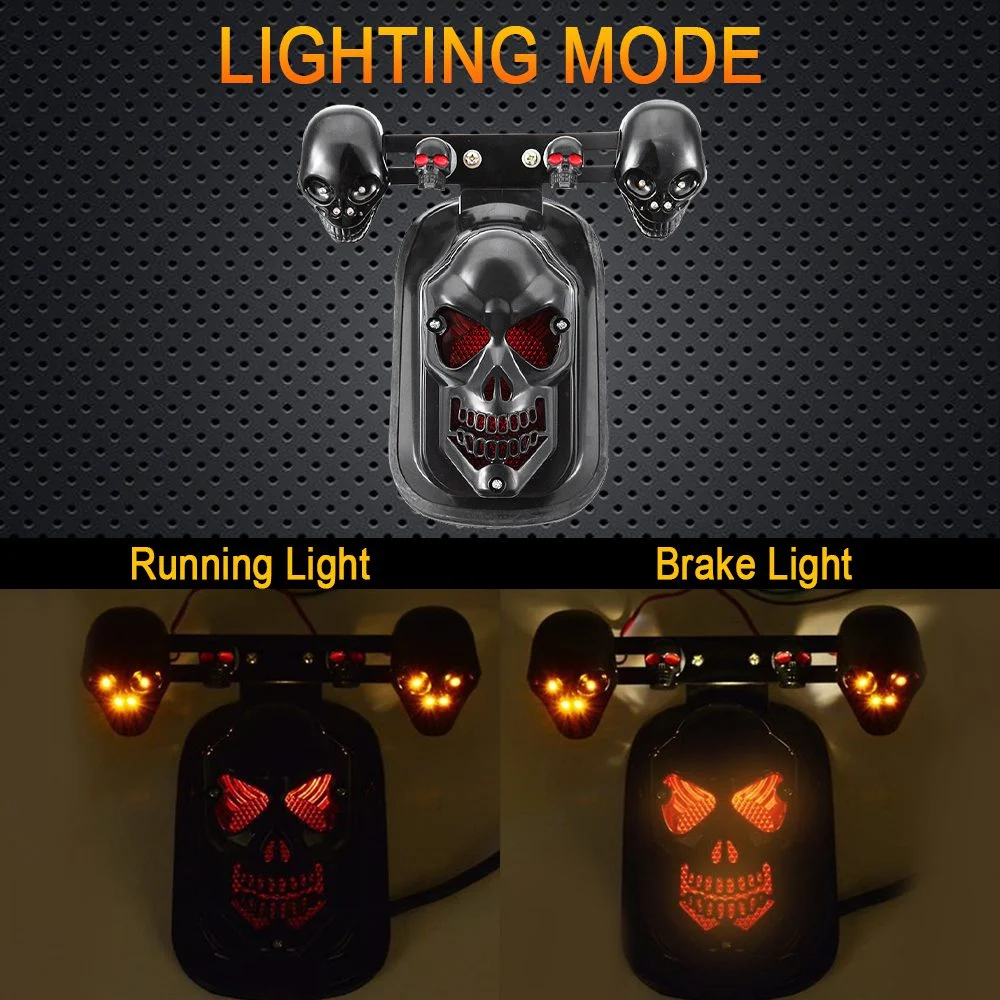Motorcycle Back Light Modified Skull Ghost Head Rear Taillights Brake Lights Running Lights