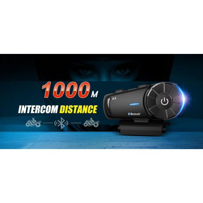 SCS – S3 Motorcycle Helmet Bluetooth Intercom Device with Conference 6-8 Rider Range 1km | Call FM Music