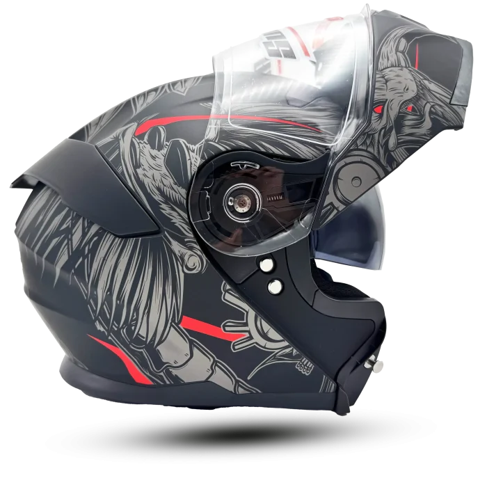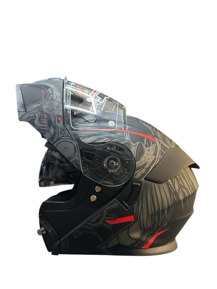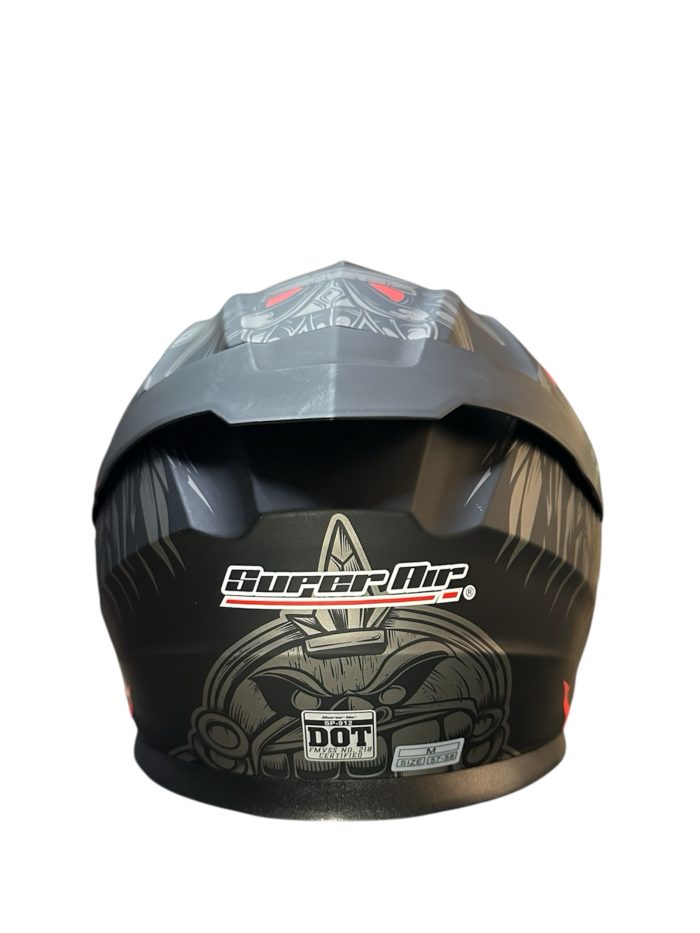 Super Air Helmet SP-912 Guardian Angel Matt Black with Red Uplift Dual Visor DOT Approved SP 912 Removeable Padding With Spoiler SP912
